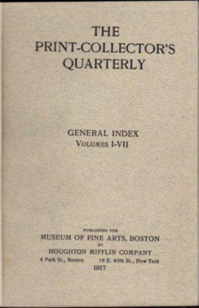 CARRINGTON, Fitzroy. (Edited by). The Print Collector's Quarterly. General Index Volumes I-VII. Boston. Houghton Mifflin Company for Museum of Fine Arts. 1917.