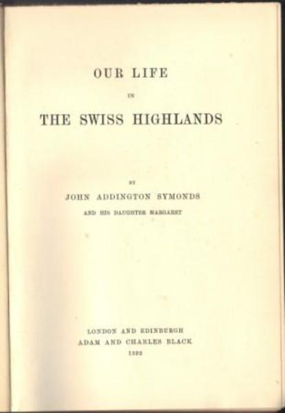 SYMONDS, John Addington and his daughter Margaret. Our Life in the Swiss Highlands. London. Adam and Charles Black. 1892. (First edition).