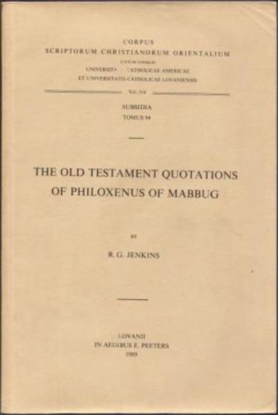 JENKINS, R.G. The Old Testament Quotations of Philoxenus of Mabbug.(Corpus Scriptorum Christianorum Orientalium. Vol.514. Subsidia. Tomus 84). Lovani (Louvain). Peeters. 1989.