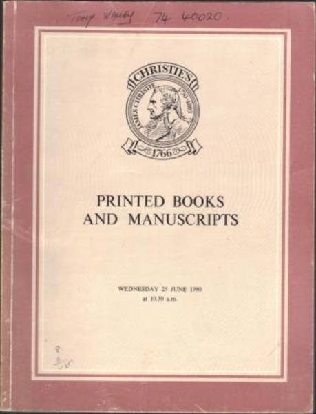 CHRISTIE, MANSON & WOODS LTD. Printed Books and Manuscripts. Wednesday 25 June 1980. London. Christie, Manson & Woods Ltd. 1980.