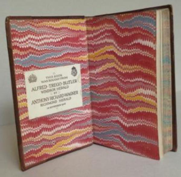 8vo (210 x 136). (6), 651, (3). Black and white frontspiece and vignette to title page. Text in French. Paperclip mark to frontspiece and titlepage not affecting plate or text. Some very light browning otherwise contents clean. Label to front pastedown. Booksellers label to rear free endpaper and binders label ( Dugon ) to rear pastedown. Half brown calf with raised bands, gilt ruled and black and gilt title label. Brown pebbled cloth to boards. Corners bumped and worn and some general rubbing. Overall a tight copy. An attractive binding and interesting association copy. The pastedown label states "This Book was Bought from Alfred Trego Butler Windsor Herald by Anthony Richard Wagner Richmond Herald 14 September 1946".