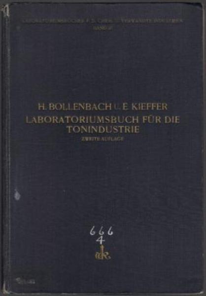 BOLLENBACH, Dr. Hermann. Laboratoriumsbuch fur die Tonindustrie. Halle. Wilhelm Knapp. 1929.