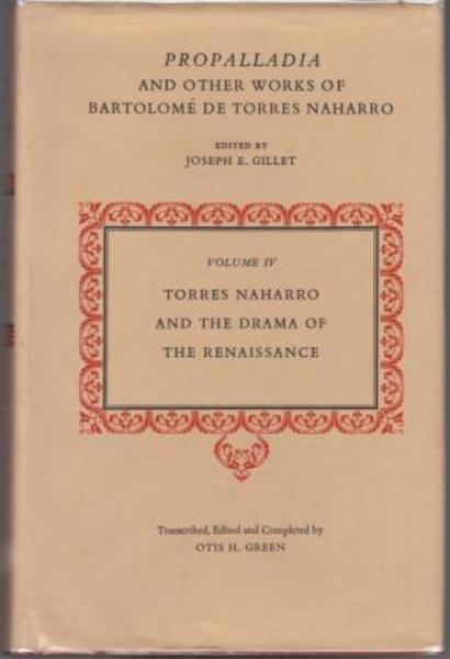 NAHARRO, Bartolome De Torres. (Edited by Joseph E.Gillet; Transcribed, Edited and Completed by Otis H. Green). Propalladia and other Works of Bartolome De Torres Naharro. Volume IV. Torres Naharro and the Drama of the Renaissance. Philadelphia. University of Pennsylvania Press. 1961.