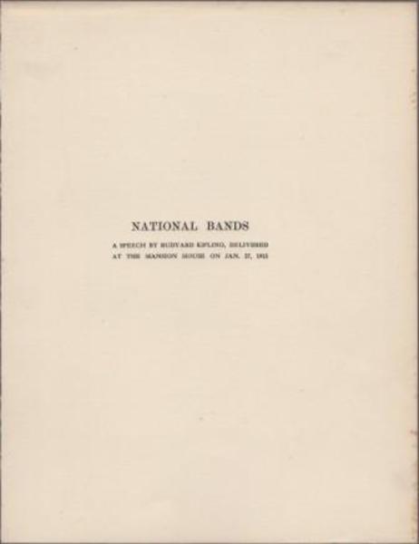 KIPLING, Rudyard. National Bands. A Speech by Rudyard Kipling, Delivered at the Mansion House on Jan 27th, 1915. 1915.
