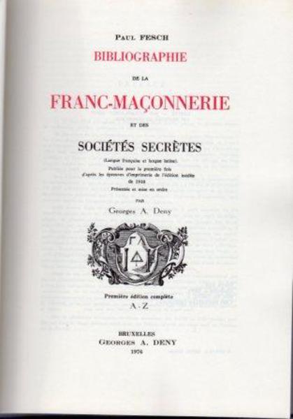 FESCH, Paul. Bibliographie de la Franc-Maconnerie et des Societes Secretes. Brussels. Georges A. Deny. 1976.