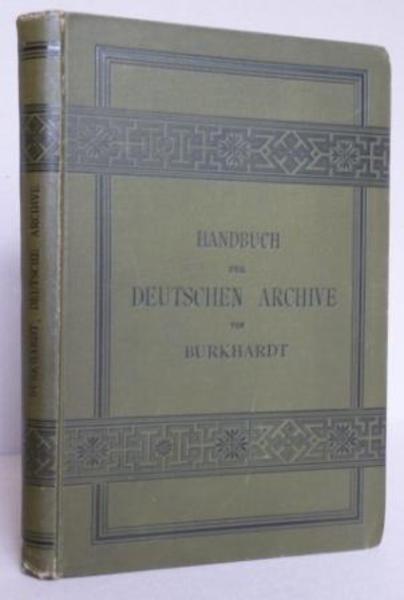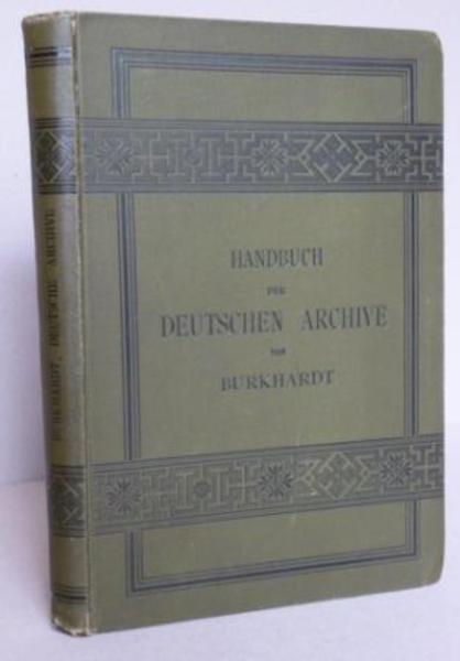 BURKHARDT, C.A.H. Hand-und Adressbuch der Deutschen Archive im Gebiete des Deutschen Reiches, Luxemburgs, Oesterreich-Ungarns, der russichen Ostseeprovinzen und der deutschen Schweiz. Leipzig. Verlag von Fr. Wilh. Grunow. 1887.