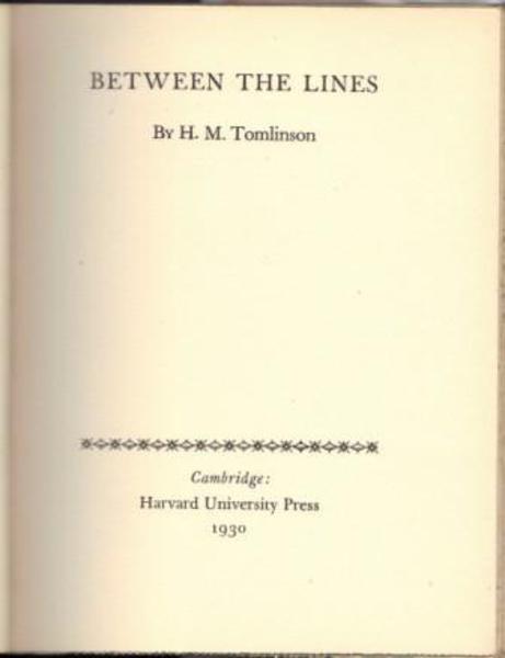 TOMLINSON, H.M. Between the Lines. Cambridge, Mass. Harvard University Press. 1930. (First trade edition).