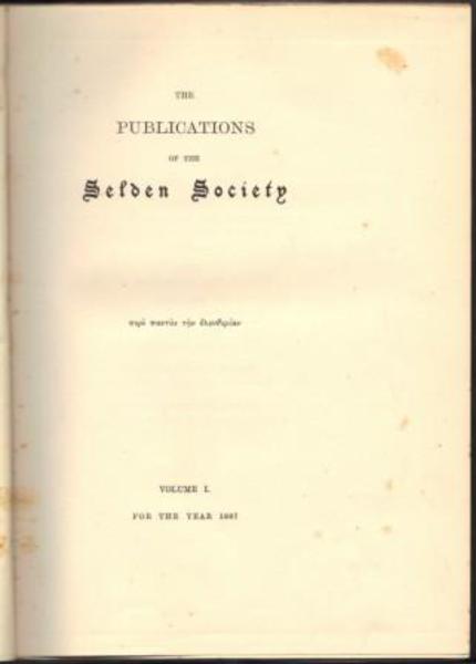 SELDON SOCIETY, THE. (Edited by F.W.Maitland). Select Pleas of the Crown. Volume I. A.D.1200-1225. London. Bernard Quaritch. 1888.