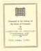 (215 x 139). pp, (ii), 109, (1). Ex library (House of Commons Library). Usual stamps, labels and marks. Browning and offsetting to end papers. Rubbed green and gilt cloth. Head and foot of spine and corners worn.