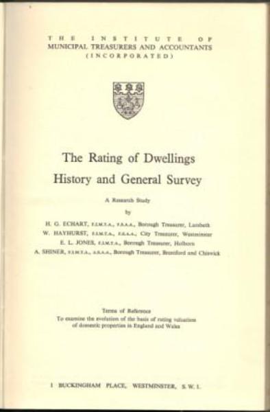ECHART, H.G. et al. The Rating of Dwellings. History and General Survey. A Research Study. London. The Institute of Municipal Treasurers and Accountants. 1958.