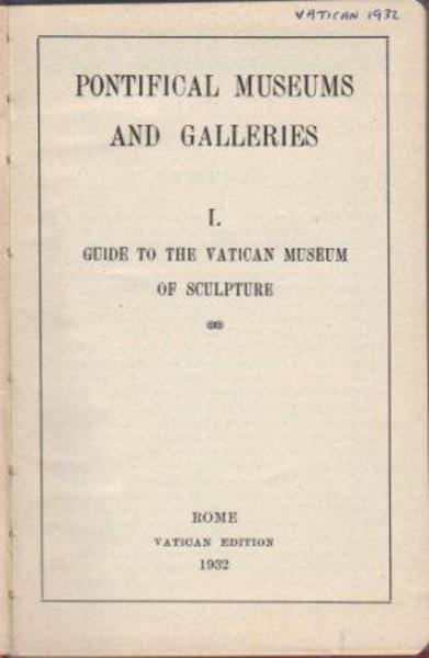 VATICAN, Rome. Pontifical Museums and Galleries. 1. Guide to the Vatican Museum of Sculpture. Rome. Vatican. 1932.