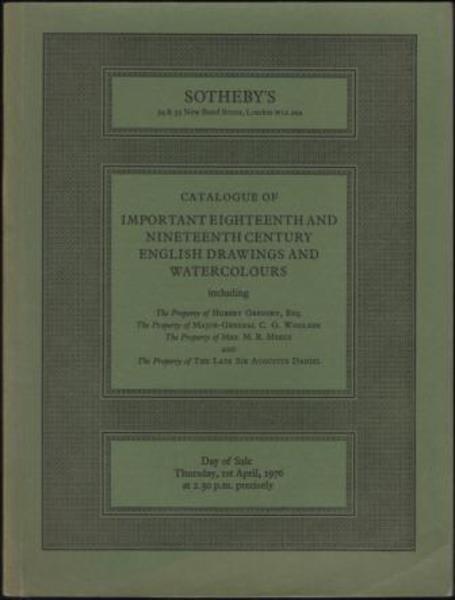 SOTHEBY'S. Catalogue of Important Eighteenth and Nineteenth Century English Drawings and Watercolours. Thursday, 1st April, 1976. London. Sotheby's. 1976.