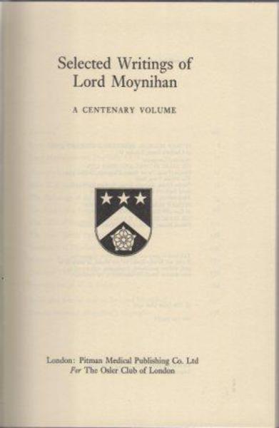 MOYNIHAN, Lord. Selected Writings of Lord Moynihan. A Centenary Volume. London. Pitman Medical Publshing Co. Ltd. for The Osler Club of London. 1967.