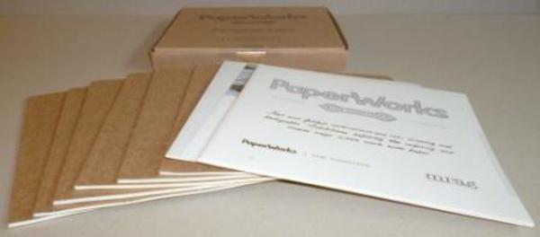 (220 x 217 x 25). 9 exhibition booklets and sheets of a series of exhibitions housed in a printed brown box with gold foil seal broken. An attractive exhibition catalogue of nine exhibitions designed as a total concept. Very good. "A series of exhibitions set out across 10 gallery spaces featuring artists from Australia, South Africa, America, China and Italy showcasing paper as a medium."