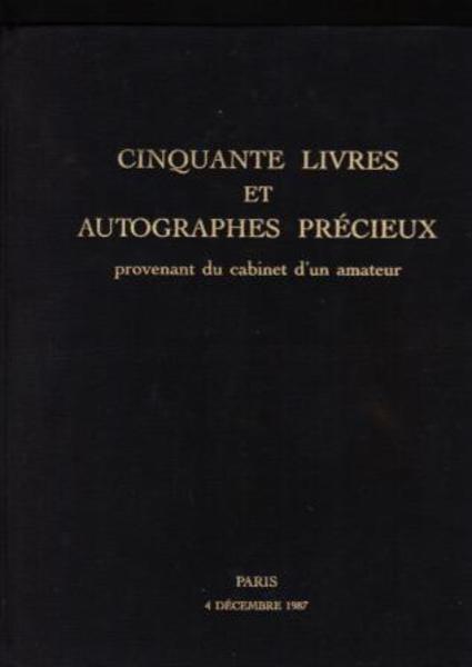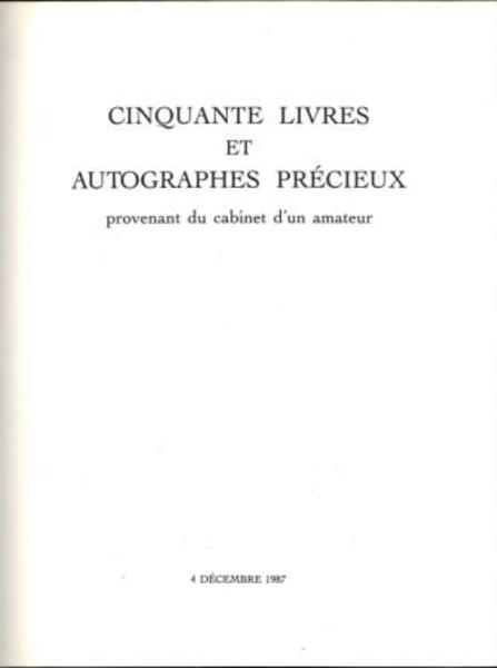 ADER PICARD TAJAN. Cinquante Livres et Autographes Precieux Provenant du Cabinet d'un Amateur. Paris.1987.