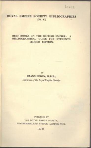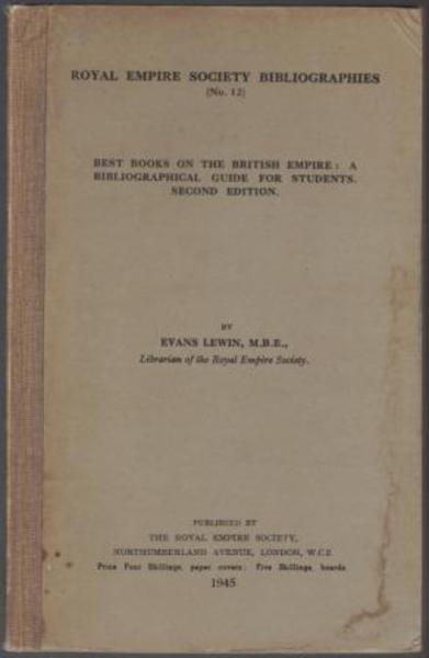 LEWIN, Evans. Best Books on the British Empire : A Bibliographical Guide for Students. (Royal Empire Society Bibliographies. No.12). London. The Royal Empire Society. 1945. (Second edition).