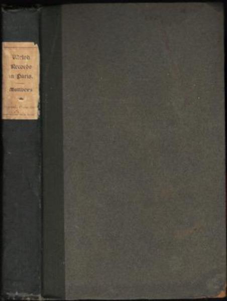 MATTHEWS, T. (Edited and introduction by). Welsh Records in Paris. Carmarthen. W.Spurrell and Son. 1910.