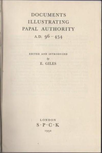GILES, E. (Edited by). Documents Illustrating Papal Authority A.D. 96-454. London. SPCK. 1952.