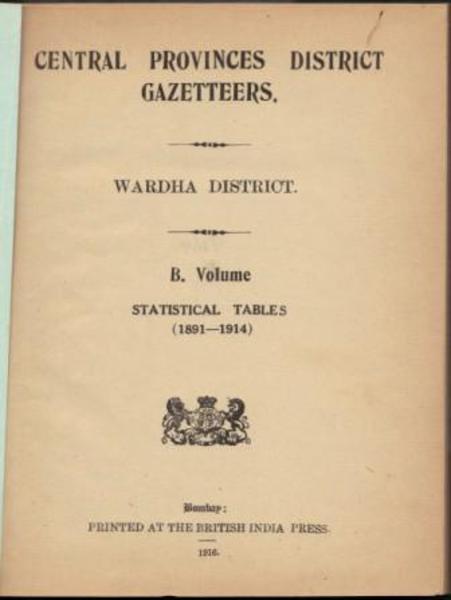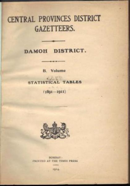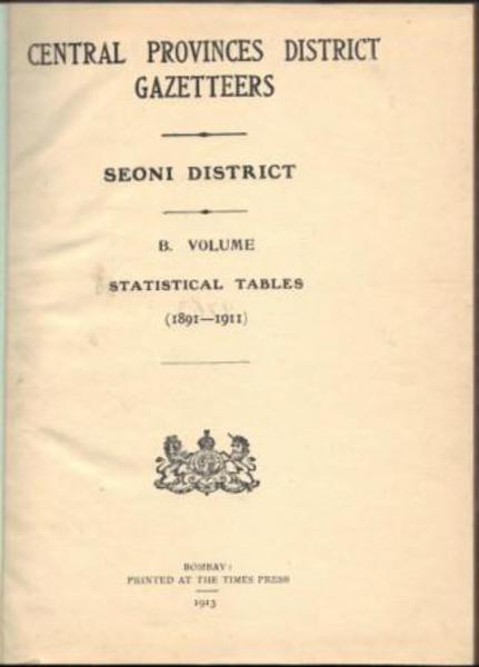 INDIA. Central Provinces District Gazetteers. Seoni District, Damoh District, Wardha District. (B volumes. Statistical tables). Bombay. The Times Press. 1913, 1914 & 1916.