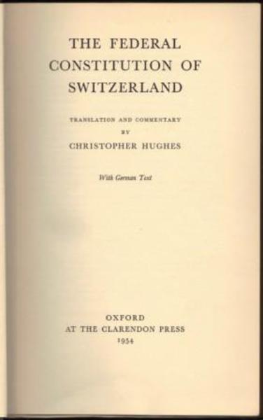 HUGHES, Christopher. The Federal Constitution of Switzerland. Oxford. The Clarendon Press. 1954. (First edition).