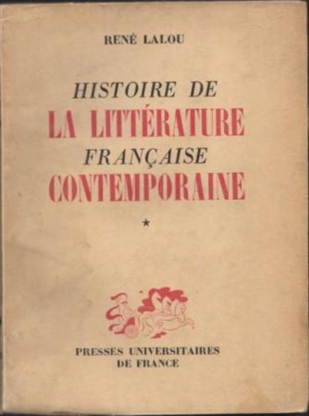 LALOU, Rene. Histoire de la Litterature Francaise Contemporaine (De 1870 a nos Jours). Tome I. Paris. Presses Universitaires de France. 1953.