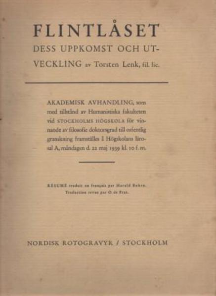 LENK, Torsten. Flintlaset : Dess uppkomst och utveckling av Torston Lenk, fil. lic. Stockholm. Nordisk Rotogravyr. 1939.
