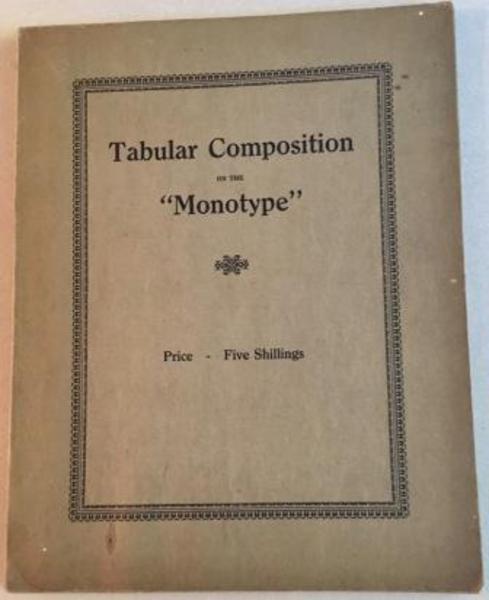 LANSTON MONOTYPE CORPORATION LTD. Tabular Composition on the "Monotype". London. Lanston Monotype Corporation Ltd. No date.