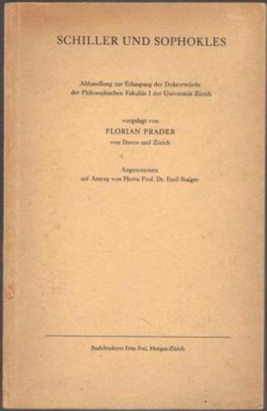 PRADER, Florian. Schiller und Sophokles. Zurich. Atlantis. 1954.